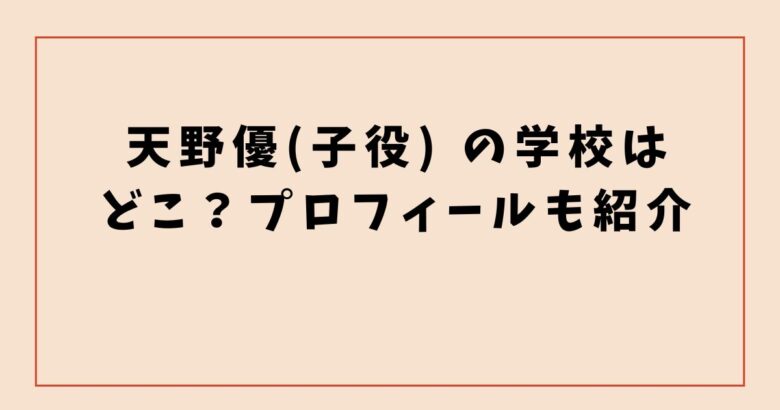 そんな天野優くんは今回のドラマで大抜擢された注目の子役ですが、学校はどこなど気になってる方も多いですよね?