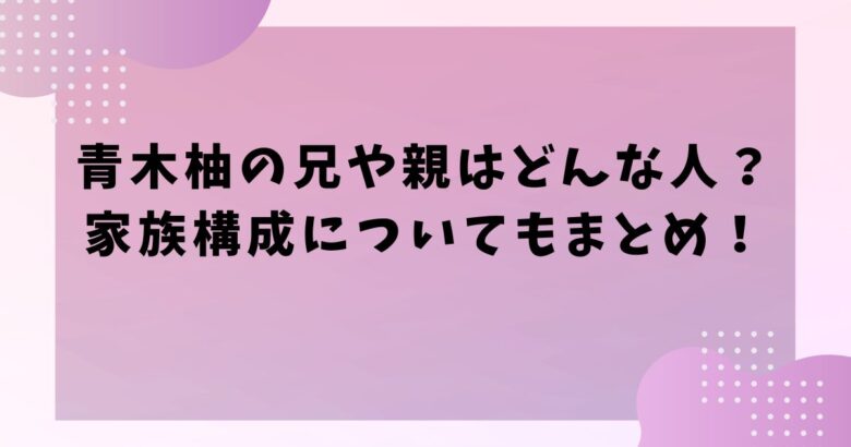 - 青木柚さんの兄弟は、年齢が3つ離れている兄が一人います