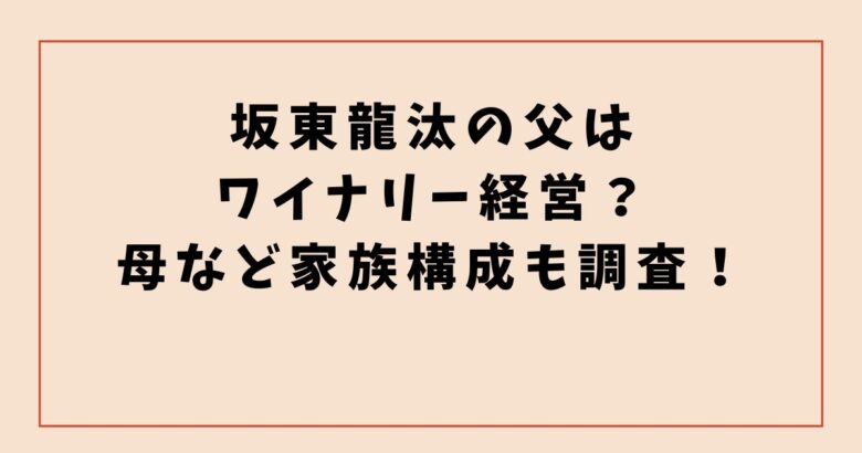 そんな坂東龍汰さんの父は、ワイナリー経営者だという噂もありますが気になりますよね?