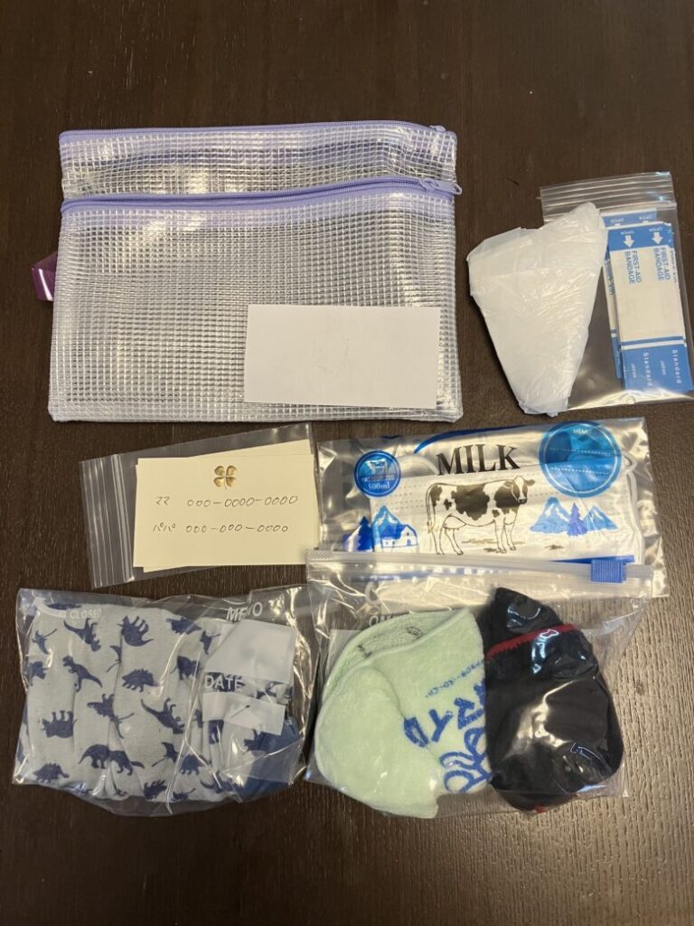小さめのポーチに、替えグッツや絆創膏、連絡先カードなどお守りグッツをランドセルにいれておくと安心です。