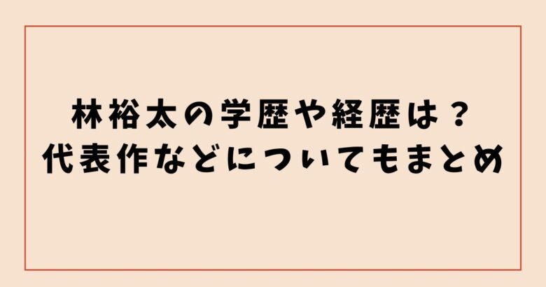 また、林裕太さんの経歴や代表作などについても知りたい方も多いはずです!