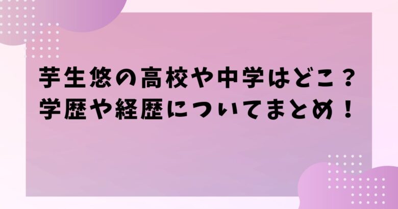 - 芋生悠さんの経歴は、JUNON Girls Contestファイナリストに選ばれ、芸能界デビューしドラマ、映画、舞台、CMにて幅広く活躍しています