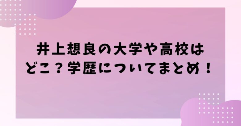 そんな井上想良さんの大学や高校はどこか知りたいファンも多いはずです!