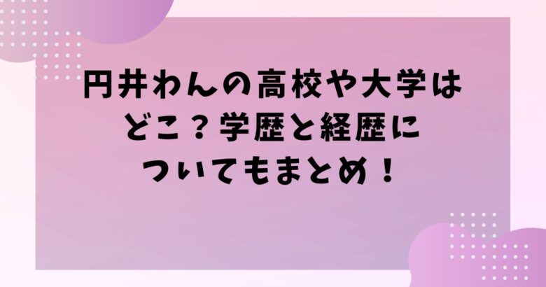 そんな円井わんさんの通っていた高校や大学について、ファンなら是非知りたいですよね?