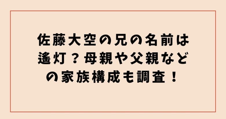 そんな佐藤大空くんには兄がいますが、詳しい家族構成なども気になりますよね?