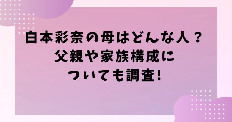 また、白本彩奈さんの父親や家族構成についても気になるところだと思います。