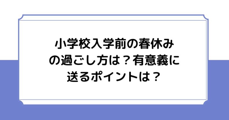 そこで、小学校入学前の春休みは有意義に過ごせるポイントを紹介します。