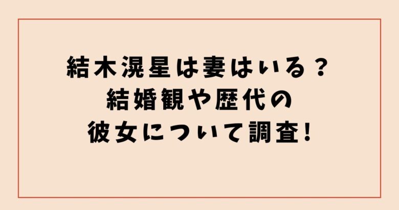 - 結木滉星さんが結婚しておらず、妻はいないようです